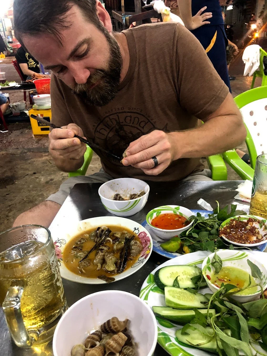 Trying Vietnamese Mud Creeper Snails (Ốc Len) on our first night in Saigon.